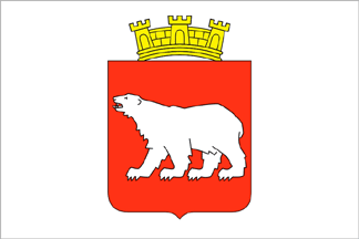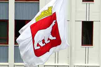 to the town. The flag corresponds to the arms, that is, a white polar bear on