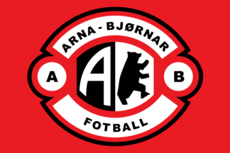 The flag of Arna-Bjørnar Fotball from Indre Arna in Bergen Municipality is red with the badge centered.