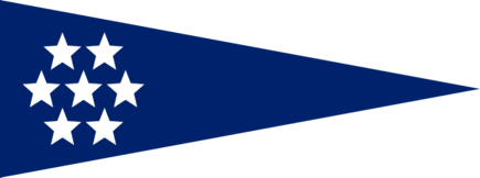 seven white stars in a hexagonal arrangement near the hoist.