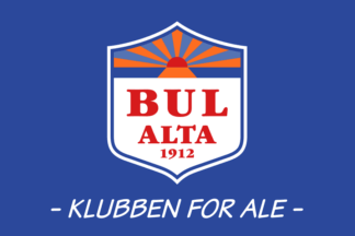 The flags of Bossekop UL (Bossekop Ungdomslag) from Alta are blue or chequered blue and white with the badge centered.