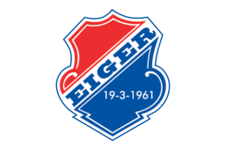 The flag of Eiger FK (Eiger Fotballklubb) from Egersund in Eigersund Municipality is white with the badge centered.