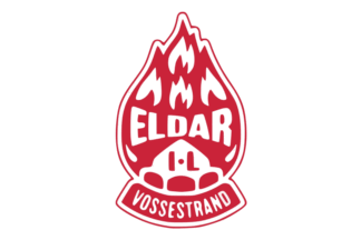 The flags Eldar IL (Eldar Idrettslag) from Vossestrand in Voss Municipality use white with the badge centered.
