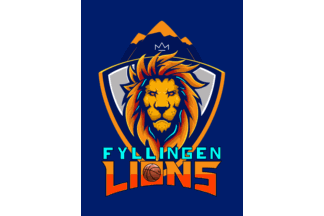 The flags of Fyllingen Lions basketball club from Bergen are white or white-blue-white with the badge centered.