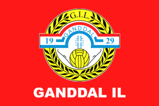 The flag of Ganddal IL (Ganddal Idrettslag) from Sandnes is red with the badge centered.