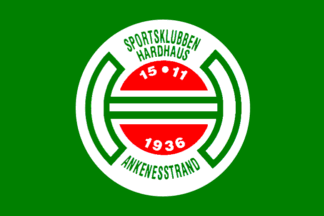 The flag of SK Hardhaus (Sportsklubben Hardhaus) from Ankenes (also Ankenesstranda or Ankenesstrand) in Narvik Municipality is green with the badge centered.