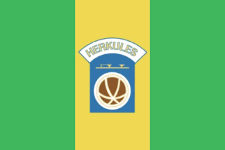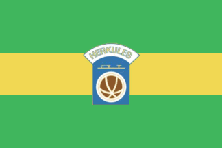 The flags of IF Herkules (Idrettsforeningen Herkules) from Skien employ green and yellow, as horizontal or vertical tribars or as plain color with the name.