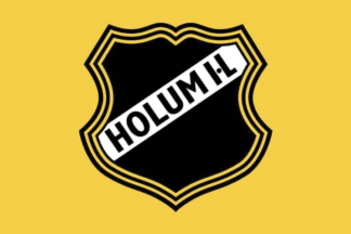 The flag of Holum IL (Holum Idrettslag) from Holum in Lindesnes Municipality is yellow with the badge.