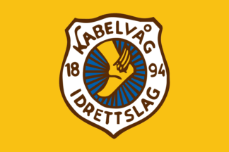 The flag of Kabelvåg IL(Kabelvåg Idrettslag) from Kabelvåg in Vågan Municipality is deep yellow with the badge centered.