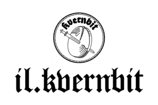 The flag of IL Kvernbit (Idrettslaget Kvernbit) from Frekhaug in Alver is red with the logo centered.