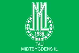 The flag of Midtbygdens IL (Midtbygdens Idrettslag) from Tau in Strand Municipality is green with the badge centered.
