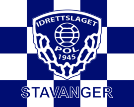 The flags of IL Pol (Idrettslaget Pol) from Stavanger are blue and white with the badge centered - variants with white field, blue field, chequered field are found, as is a pennant.