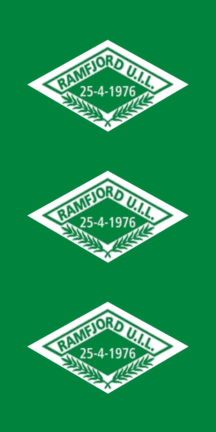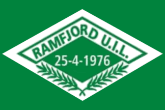 The flags of Ramfjord UIL (Ramfjord Ungdoms- og Idrettslag) from Fagernes in Ramfjordbotn in Tromsų Municpality are white with the badge centered.