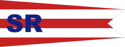 The flag of Sarpsborg Roklubb from Sarpsborg is a horizontally red-white-red-white-red swallowtail pennant with SR in blue letters near the hoist.