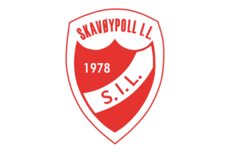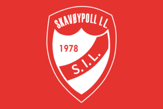 The flags of Skavøypoll IL (Skavøypoll Idrettslag) from Skavøypoll in Kinn Municipality are white or red with the badge centered.