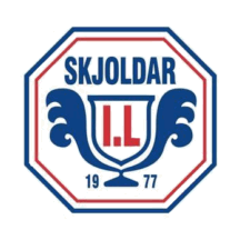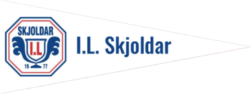 The flag of IL Skjoldar (Idrettslaget Skjoldar) from Skjold in Vindafjord Municipality is white with the badge centered.