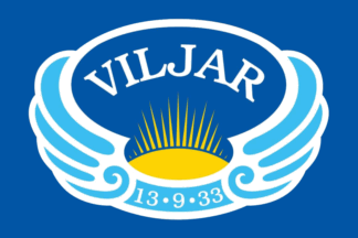 The flag of IL Viljar (Idrottslaget Viljar) from Vossevangen (Palmafossen) in Voss Municipality is white with the badge centered.