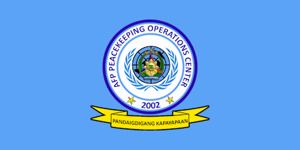 The Philippine peacekeeper forces uses a tri-band flag of green, UN blue and dark blue, with their emblem in the center. (Source)
