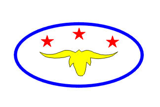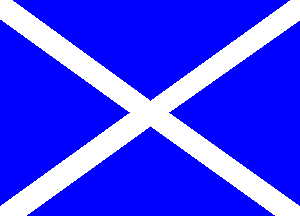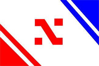 blue border triangle, interrupted by a white hoist diagonal ; in bottom hoist a