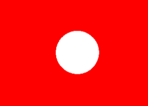 red border triangle, interrupted by a hoist diagonal white stripe; in center red