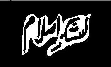 It is a black flag of unknown ratio with a black Arabic inscription,