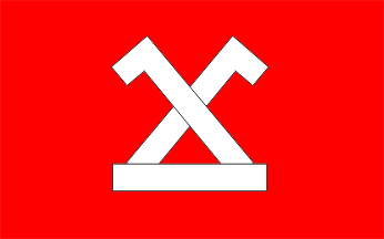 Flagdescription: red, in center a small rectangle with two l-shapes
