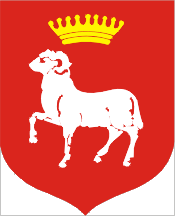 Arms: gules a lamb passant argent, in chief a crown or.