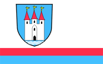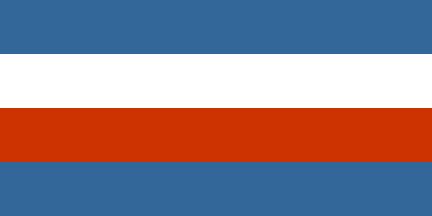 - civic Korfantów flag: horizontal stripes white - red - blue, proportioned 6:1:1