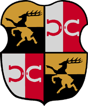 four fields, vertical white and red with horseshoes in reverse colors and