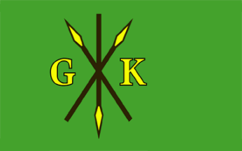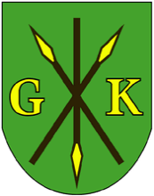 with golden arrowheads between two golden initials "G" and "K" standing