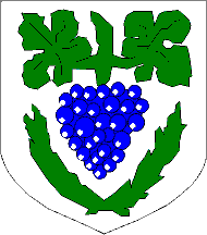 Coat of Arms: argent a bunch of grapes azure between in chief and in