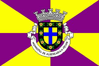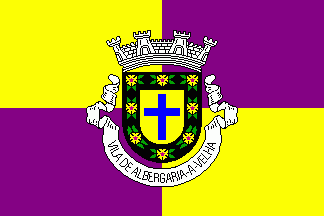 The current coat of arms has a mural crown Argent with five visible towers (city rank) . The inscription of the scroll is "MUNICíPIO DE ALBERGARIA-A-VELHA". Finally the cross Azure of the former arms (see below) was replaced by a throughout cross Azure.