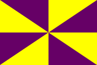 It is a typical Portuguese municipal flag, with the coat of arms centred on a field gyronny of eight of yellow and purple.