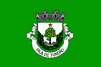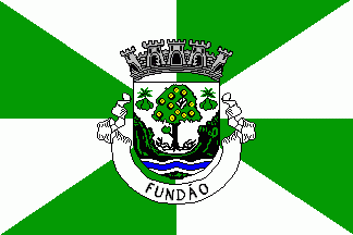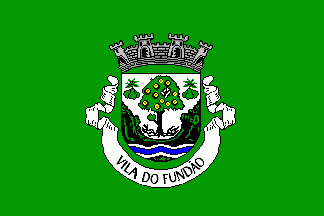 It was a fairly typical Portuguese municipal flag, with the coat of arms centred on a plain green background. This flag (still unofficial) had trivial changes upon upgrading to city status on 14 April 1988 from the original flag, with five visible towers and white scroll reading in black upper case letters "CIDADE DE FUNDÃO".