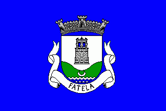 Shield Argent a belfry Sable masoned Argent with two windows of the same, both charged with a bell Azure, issuant from base wavy of Argent and Azure a valley Vert charged with a crescent recumbent Argent. Mural crown Argent with three visible towers (village rank) and short white scroll, in Bénard Guedes style, with inscription in black initials "FATELA".