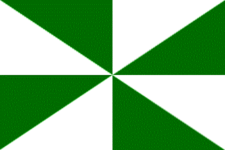 This flag and arms are in probable use since the upgrade from (town rank) in 1997.07.12 and there were but trivial changes made to the previous flag (q.v.).