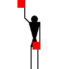 When receiving, the signaller stands at the “ready” position with the two flags crossed in front of the legs.