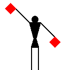 The signaller then gives the Semaphore alphabetical sign (identical to the signal for the letter J) and waits until the person receiving the message replies with the letter C.