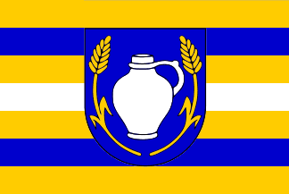 The flag of Kovačica (photo) is white with the town's emblem and name beneath.