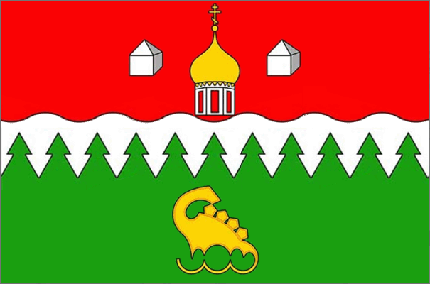 A rectangular cloth with a flag width to length ratio of 2:3, reproducing figures from the coat of arms, executed in red, green, white, and yellow colors.