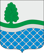 coat of arms consists of a silver top with a bright green line with a stylized