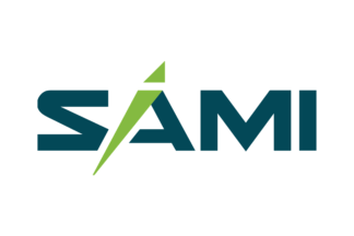 The flag of Saudi Arabian Military Industries is white with the logo-name and sometimes with the name fully spelled out in Arabic and English.