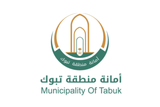The flags of Tabuk are white with the logo centered, with or without the name in Arabic and English.