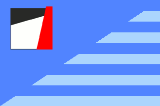 is white with a pale red and a pale blue segments in the canton edge and