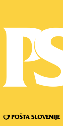 The flag of Post of Slovenia (photo, photo) is vertical, yellow with white initials in the center and black logo on bottom.