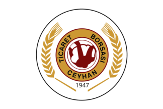 The flag of Ceyhan is white with the municipality's emblem. "Belediyesi" means "Municipality". The emglem is used in two slightly different versions (photo; photo, photo).