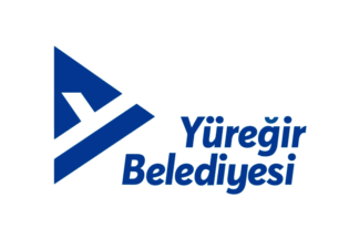 The flag of Yüreğir is celestial blue (photo) or white (photo) with the municipality's emblem. "Belediyesi" means "Municipality".