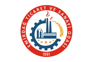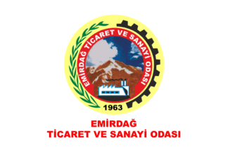 The flags of Emirdağ Chamber of Commerce and Industry are seen in photo and photo