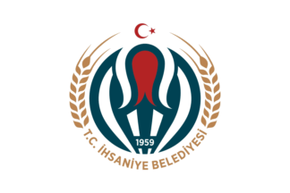 The flag of İhsaniye (photo) is white with the municipality's emblem. "Belediyesi" means "Municipality".