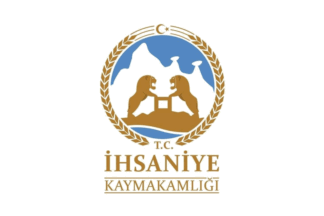 The flag of the İhsaniye district government (photo) is white with the government's emblem. "T.C." stands for "Türkiye Cumhuriyeti", "Republic of Türkiye". "Kaymakamlığı" means "District government".