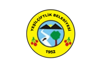 The flag of Yeşilçiftlik (photo) is white with the municipality's emblem in the middle. "Belediyesi" means "Municipality".